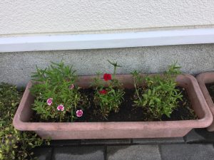 今日はお天気が良かったので、お昼から傷んだ撫子の葉をカット。